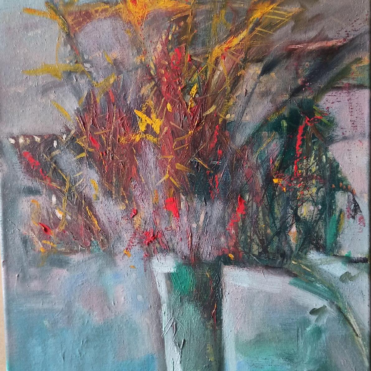 Vaso di spighe e papaveri.